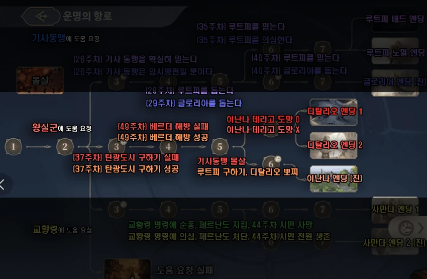 - 위 조건 모두 충족시 진엔딩, 실패시 아래 최후 선택지 돌입