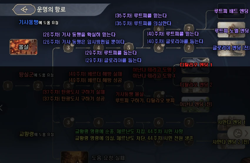 - 위 조건 모두 충족시 진엔딩, 실패시 아래 최후 선택지 돌입