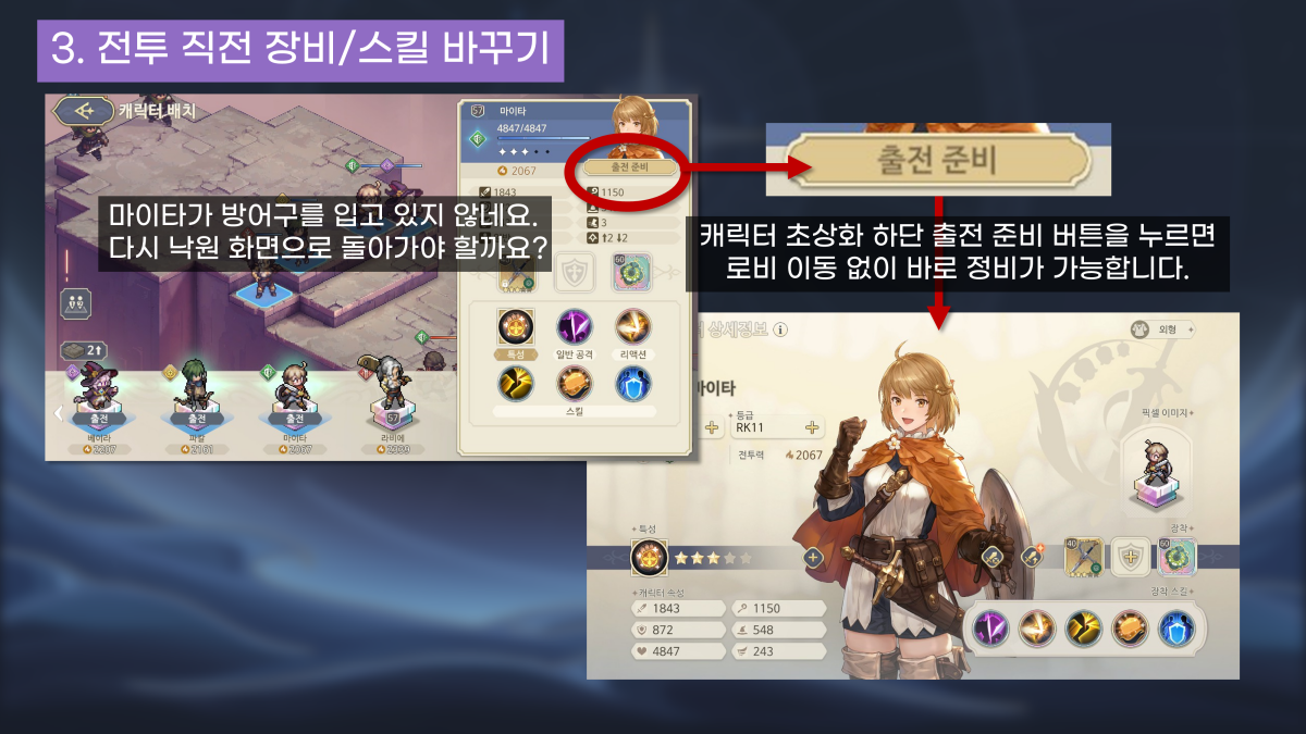 3. 전투 직전 장비/스킬 바꾸기