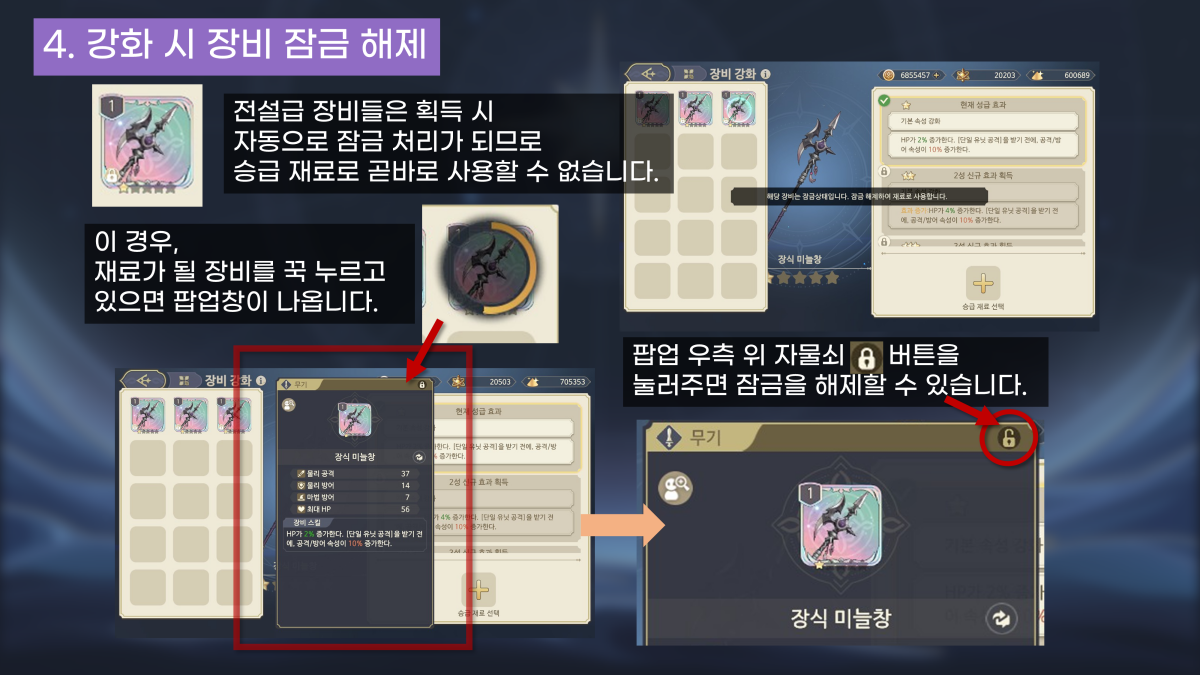 4. 강화 시 장비 잠금 해제